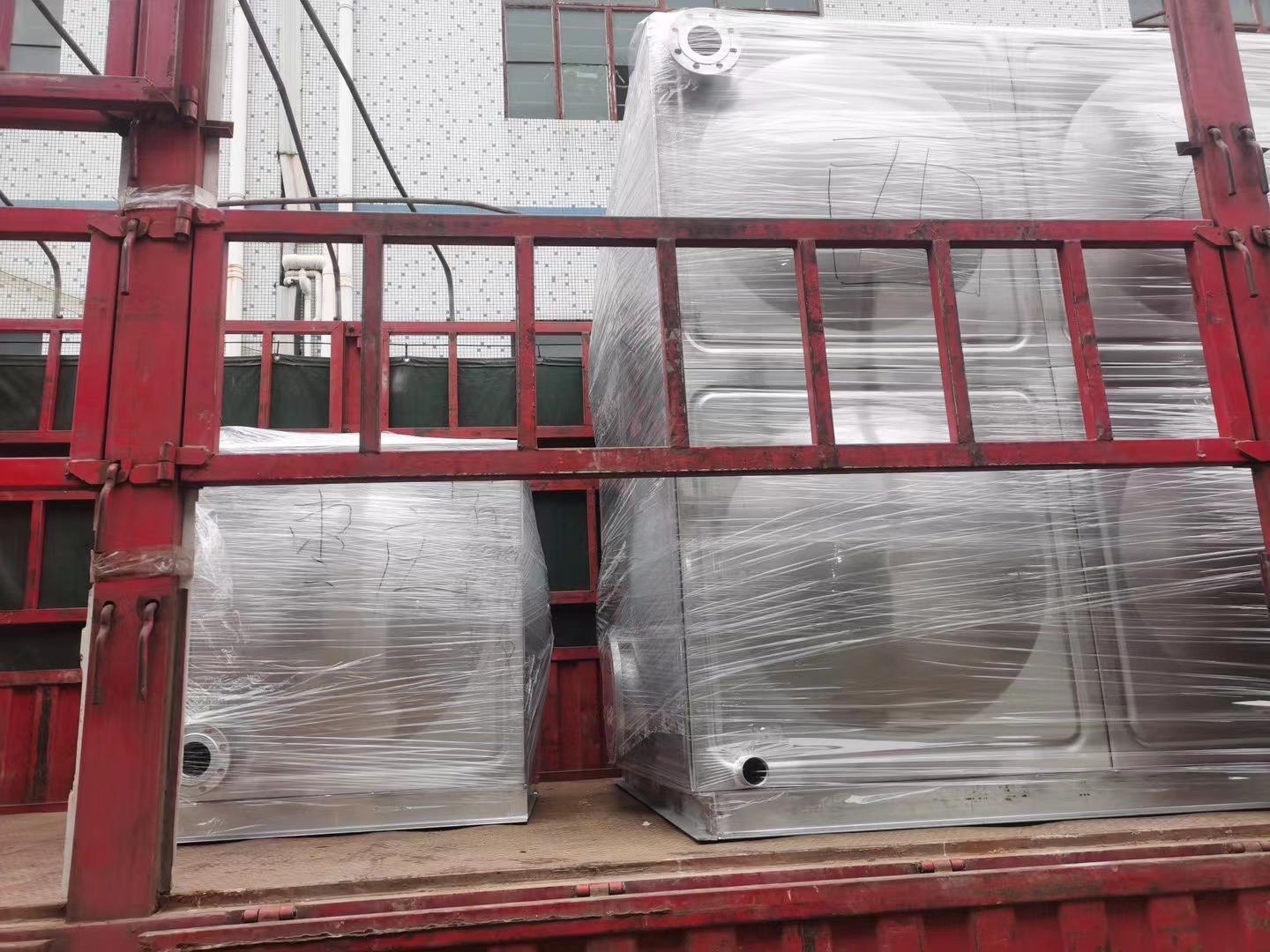 滁州項目、蘇州項目、棗莊項目、西安項目:一批不銹鋼水箱及加藥裝置裝車發(fā)貨完成,上海奧棟承諾必達!